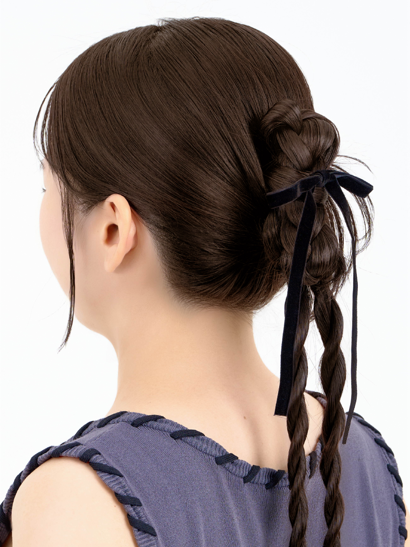 華やかなカチモリにロープ編みをプラスしたアレンジ。2本の編み込みが揺れて動きを出し、後ろ姿まで印象的に見せてくれるスタイルです。結婚式や二次会などのお呼ばれにもおすすめ◎