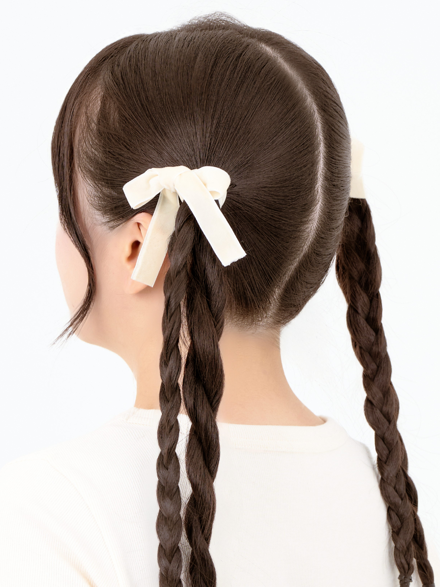 ロープ編みを左右にあしらったツインスタイル♪ ねじりの立体感が華やかで、可愛らしさの中に遊び心もプラス。特別なお出かけやイベントにぴったりのアレンジです。