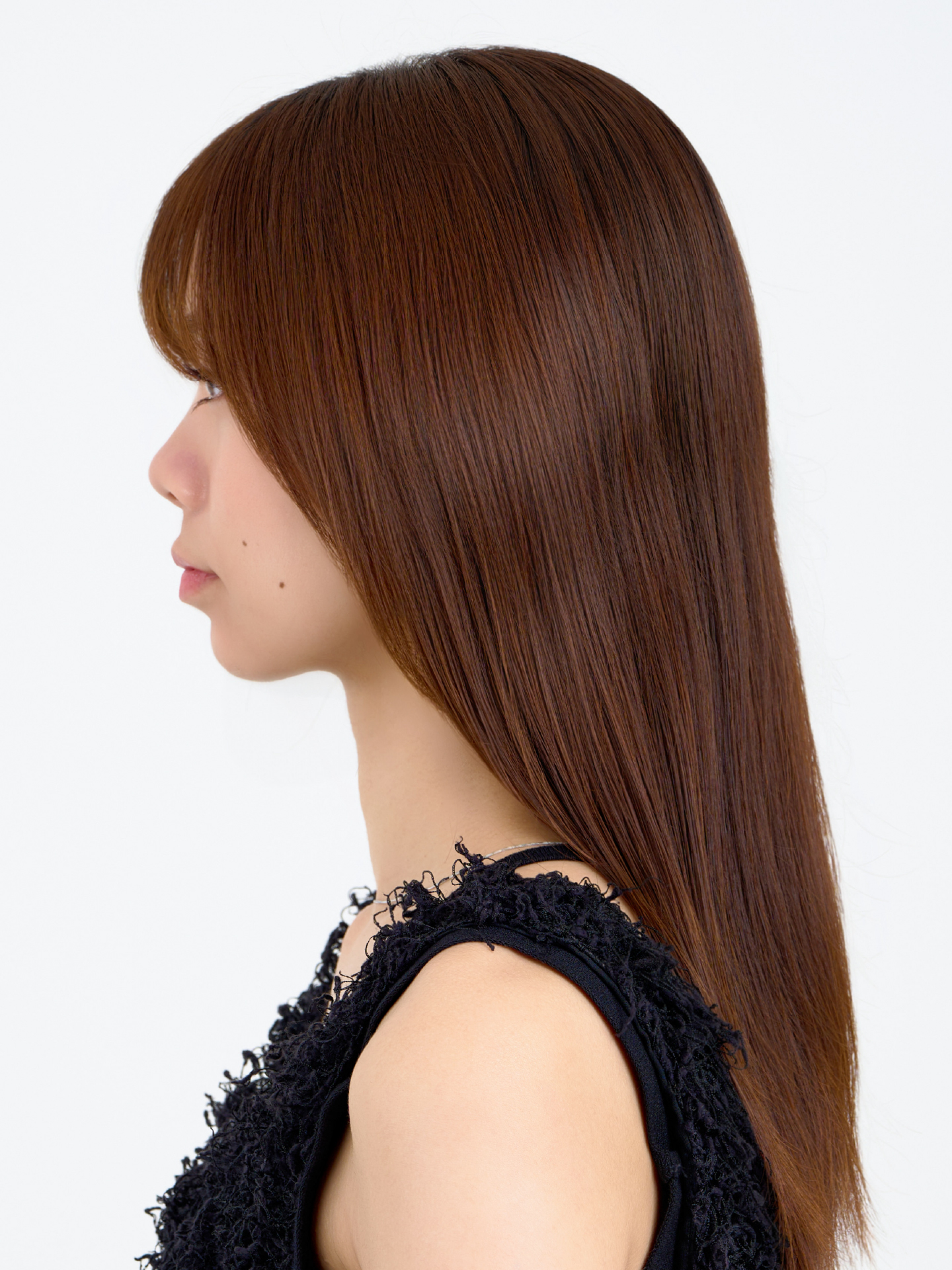 シンプルなストレートヘア。毛先にニュアンスを加え、全体のバランスを整えたサロンならではの上品で清潔感あるスタイルです。