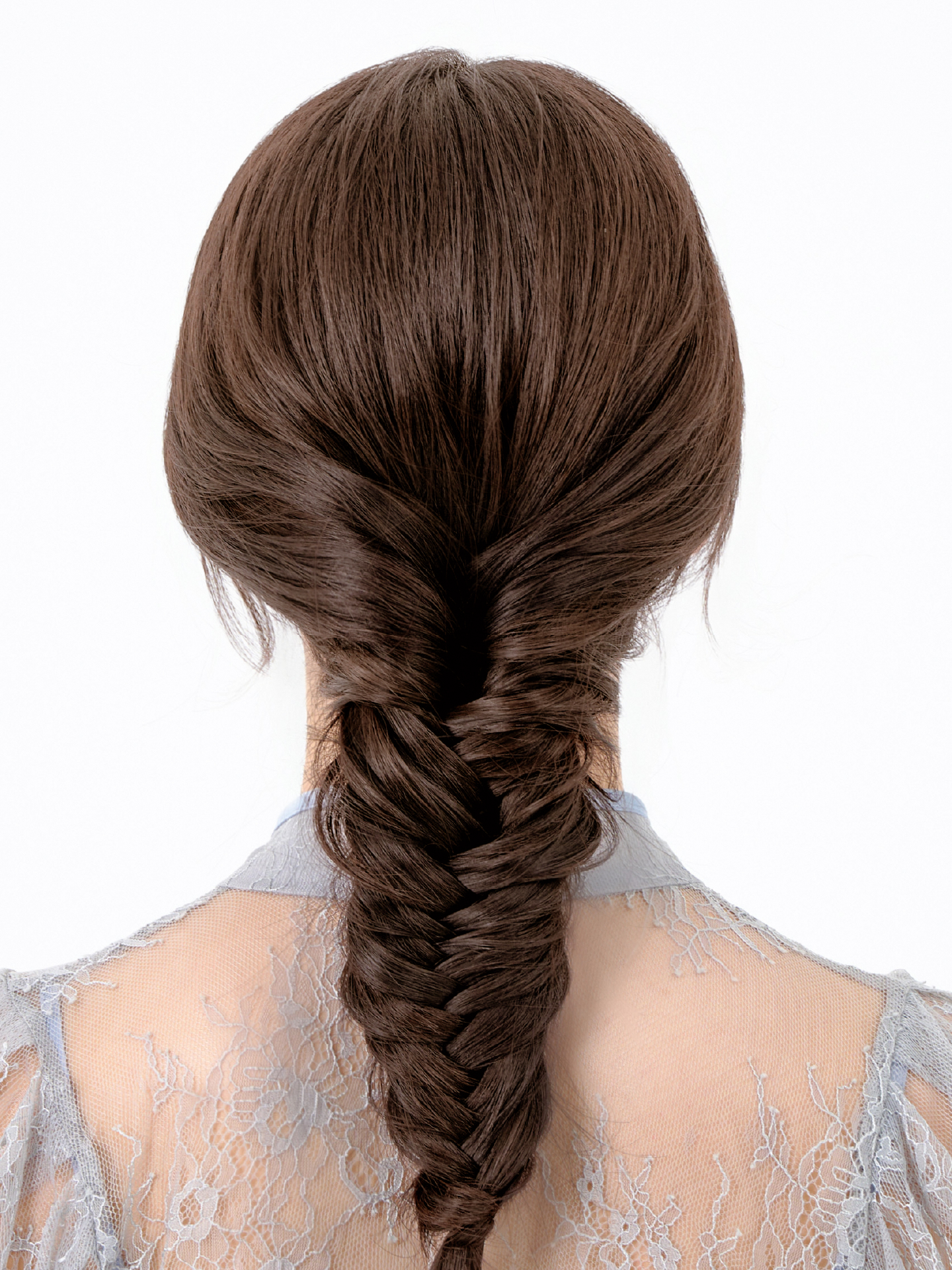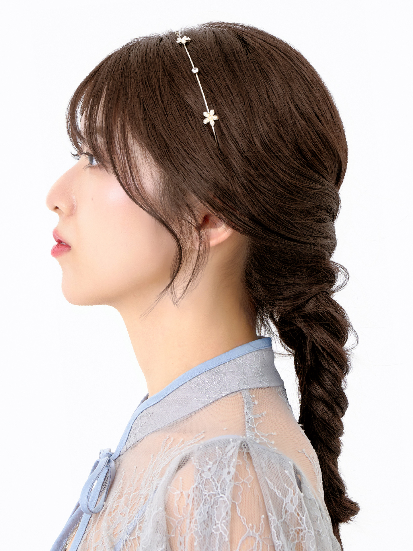 細かい編み目が特徴的なフィッシュボーン。立体感と華やかさがあり、少し特別感のある雰囲気に♪普段のお出かけはもちろん、イベントやお呼ばれにも映えるスタイルです。