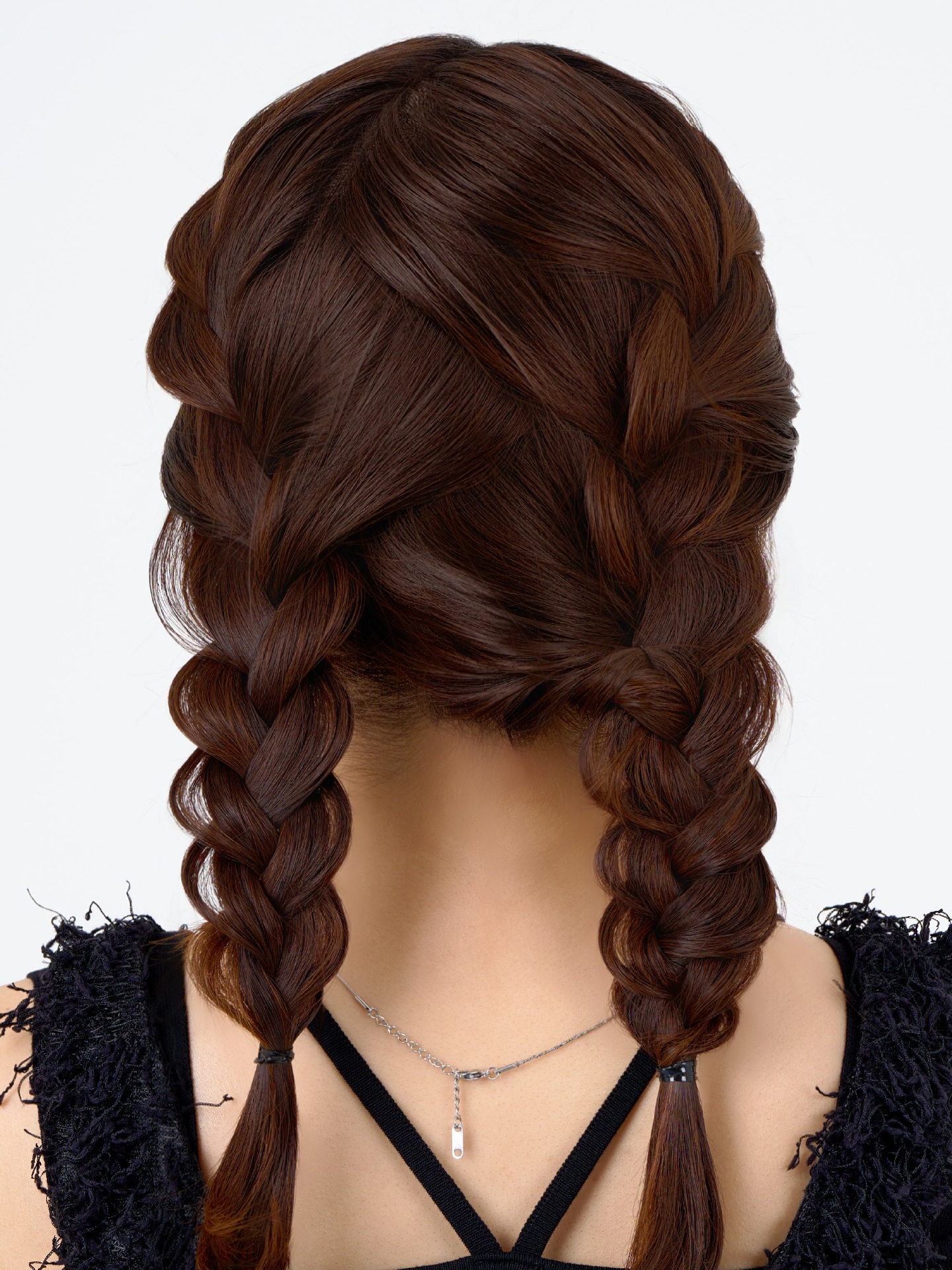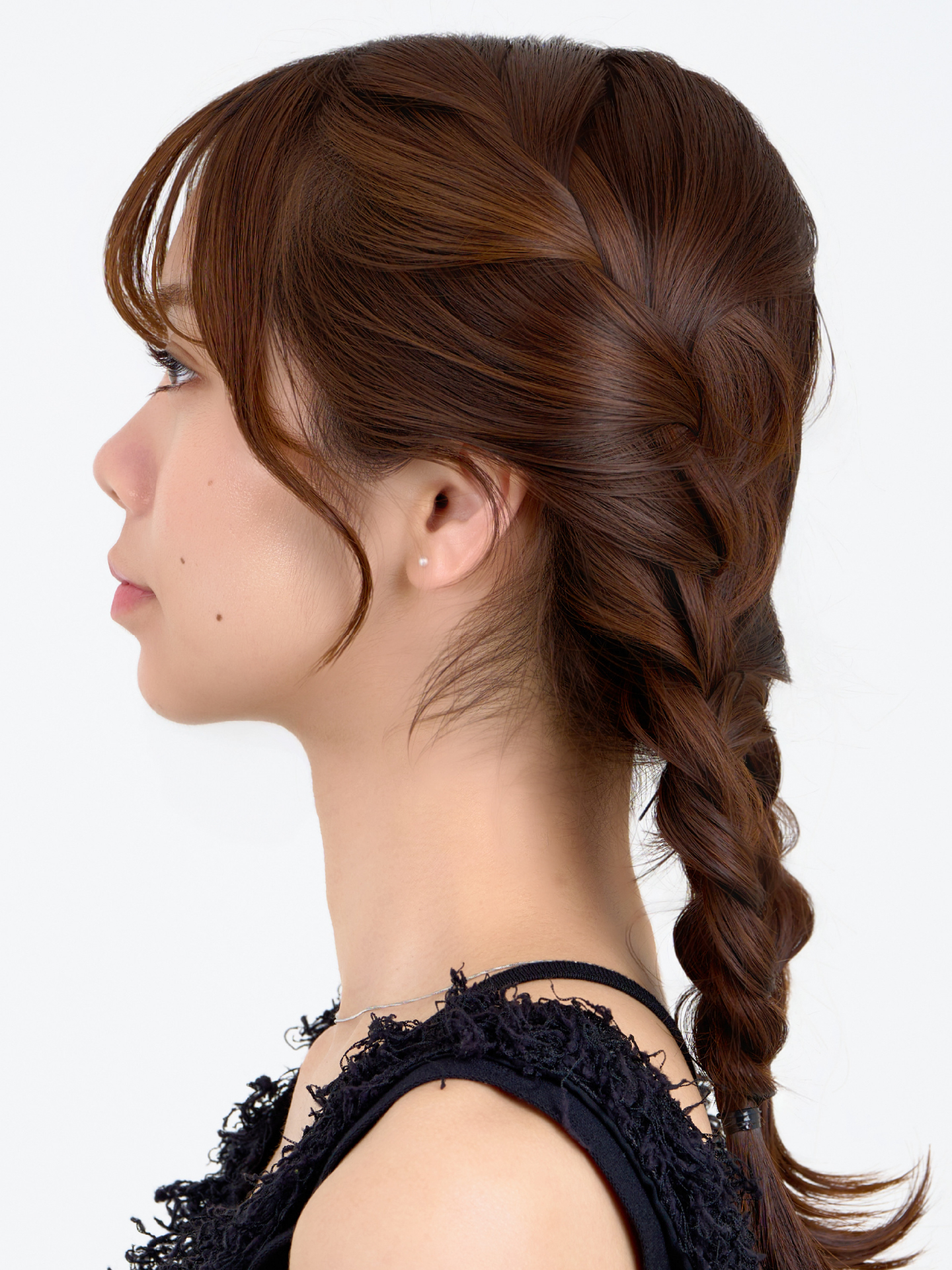 編み込みを加えたおさげスタイル。立体感のある編み目がアクセントになり、カジュアルな可愛らしさを演出。普段のお出かけからイベントまで幅広く楽しめるアレンジです♪