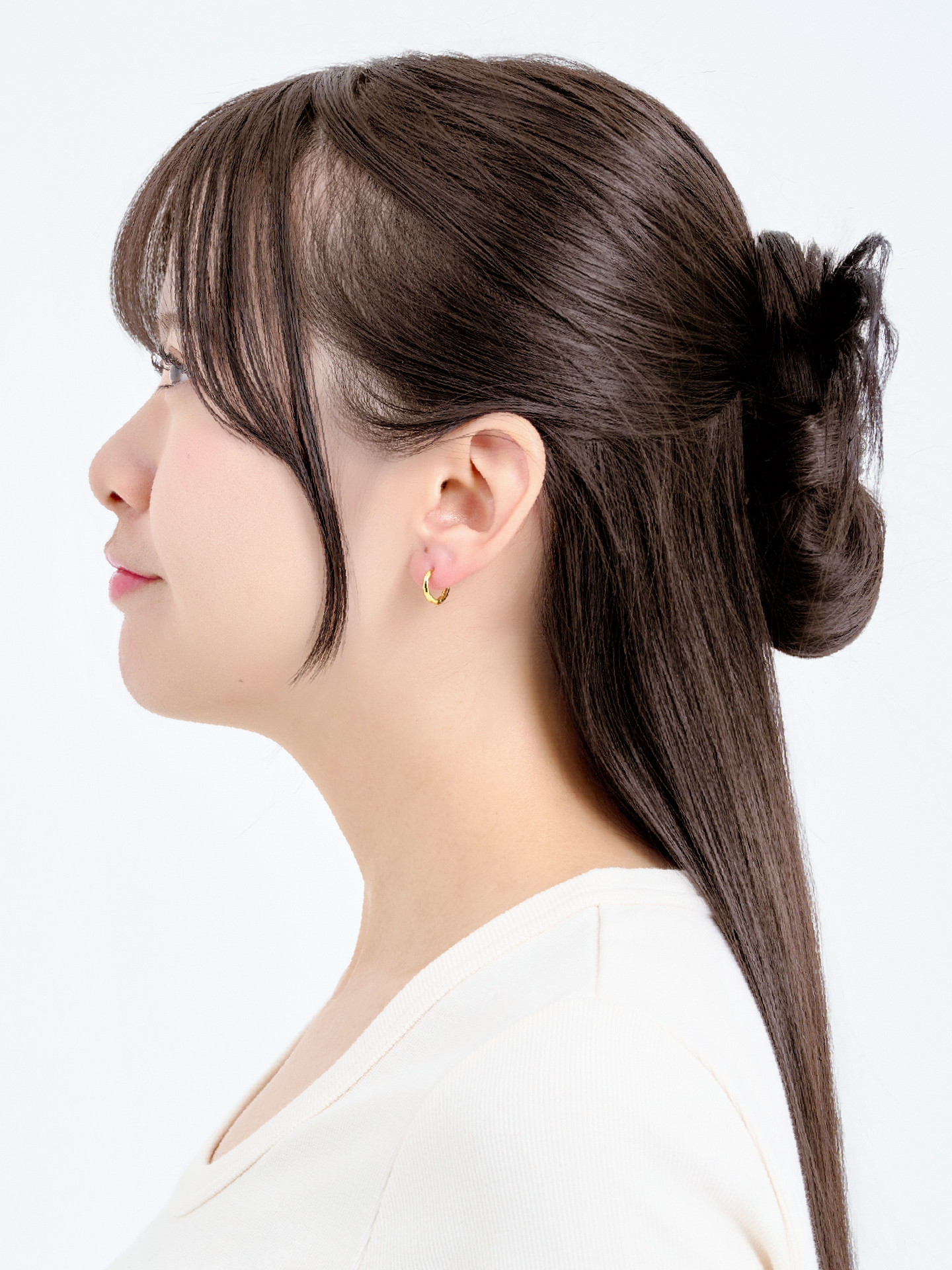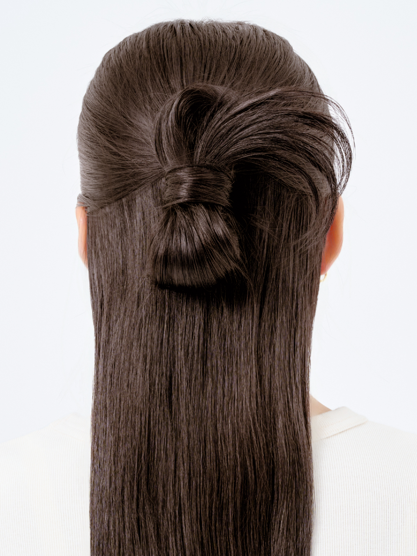 ハーフアップのリボンカチモリ♪ リボンで可愛らしさを添え、顔まわりもすっきり見せる愛らしいスタイル。トレンドの韓国風カチモリヘアです。