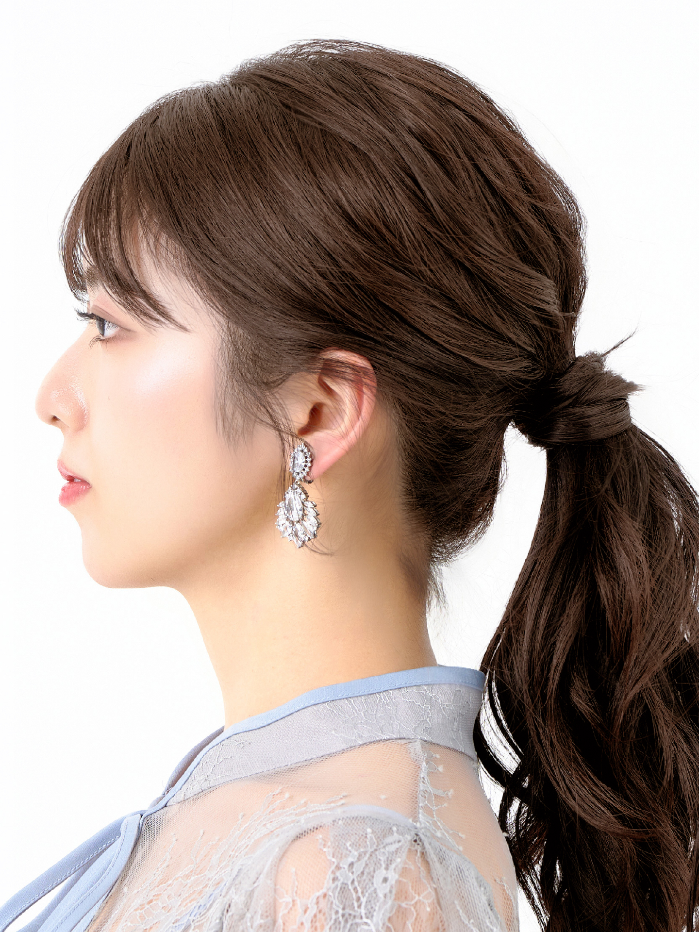 カタログ一覧にもどる ローポニー シンプルながらも洗練されたローポニー♪ 低めの位置でまとめることで落ち着いた雰囲気に。毛束の質感を活かした大人っぽく上品なスタイルで、結婚式やお呼ばれ、普段のお出かけにもおすすめです。